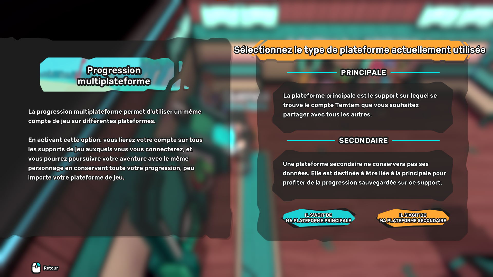 - Vous devrez désigner un compte principal, dont la progression sera ensuite transférée au(x) compte(s) secondaire(s). Notez que pour lier deux comptes, afin d'éviter les accidents, le (s) compte(s) secondaire(s) doivent avoir été préalablement réinitialisés, et vous pourrez lier ledit compte depuis le menu Paramètres du jeu.