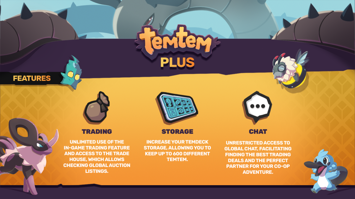 - Tout compte qui a acheté ou achètera Temtem inclut déjà Temtem Plus, sans frais supplémentaires.