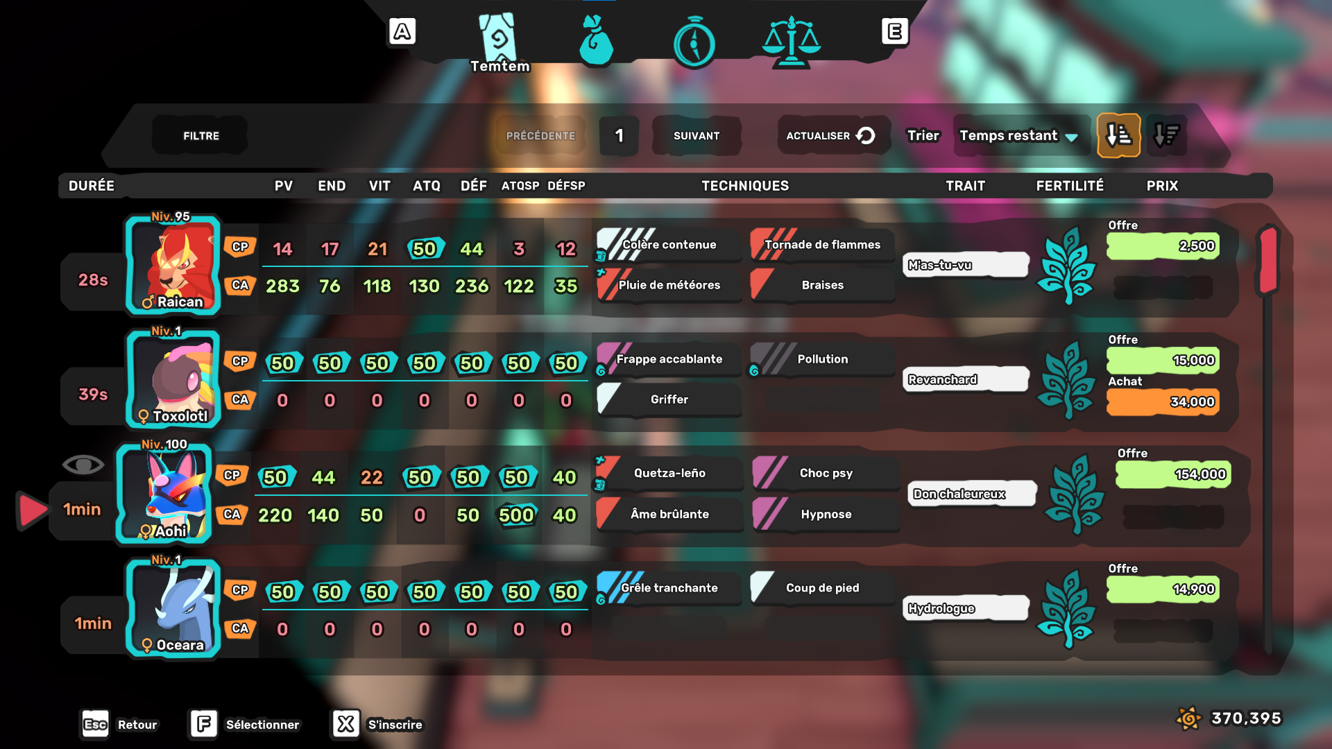 - Stockage : Augmentez votre stockage Temdeck, vous permettant de conserver jusqu'à 600 Temtem différents.